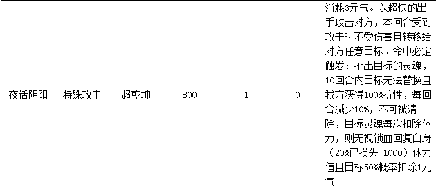 夜话阴阳:拉魂技,本回合转移伤害降低翻车概率,同时也可以代替灵魂亚比使用,减伤拉魂两不误,居家旅行(划掉)挑战boss最好有一个哦,还有这个技能算在属性技能范畴内哦