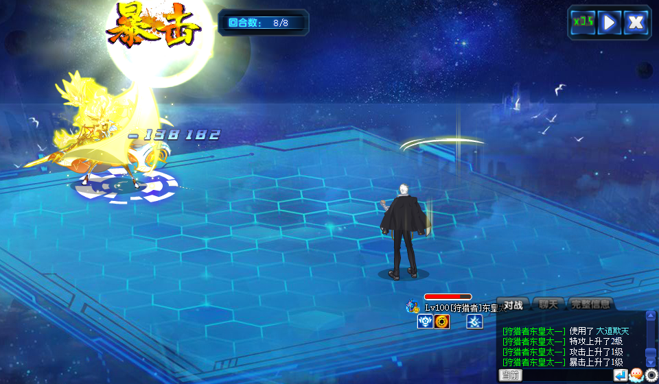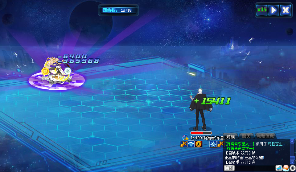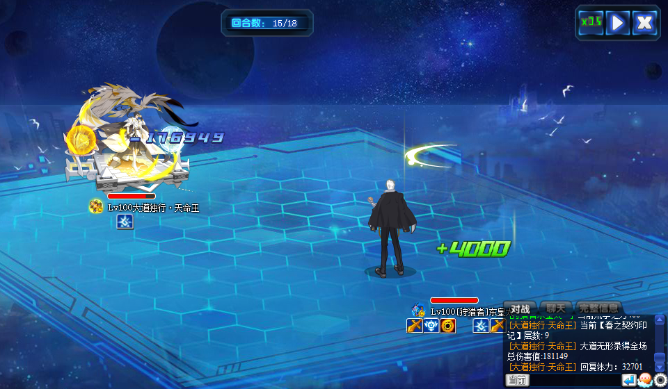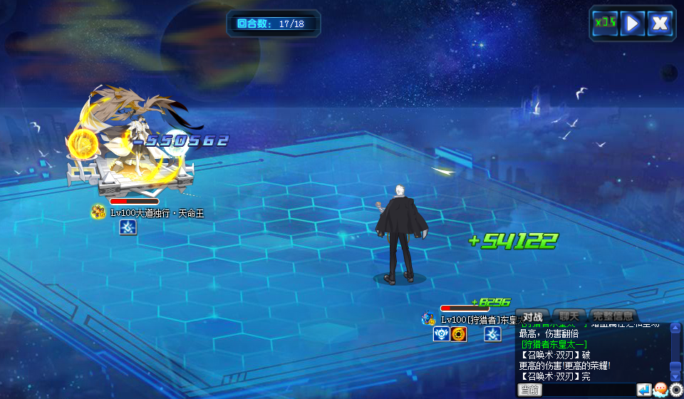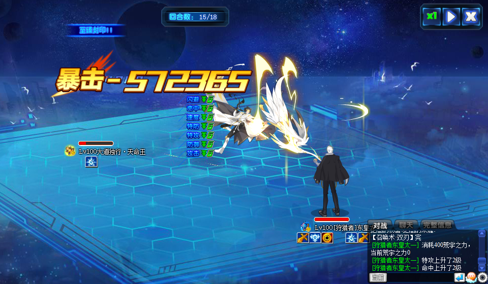 那么我们的一号参赛选手——蓝太一正式通过挑战,用时18回合,最高伤害572365