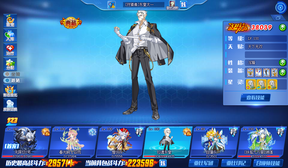 其实魔王打pvp黄金铂金还是混得下去的,但主要就是诅咒这个debuff的概率实在是迷人,不过作为小招,附上每回合减四分之一的最大体力值和削体力还是蛮香的,无限星辉特技打伤害是真的可以,大招的话没什么亮点,要是实在怕打不死对方,那就附上诅咒加特技压血线,直接带走。但是的话,如果脸黑的话,那就用抢加强混一下了,遇上锁属性和特殊无效化的话,二技能就已经废了。所以还是无限特技香。