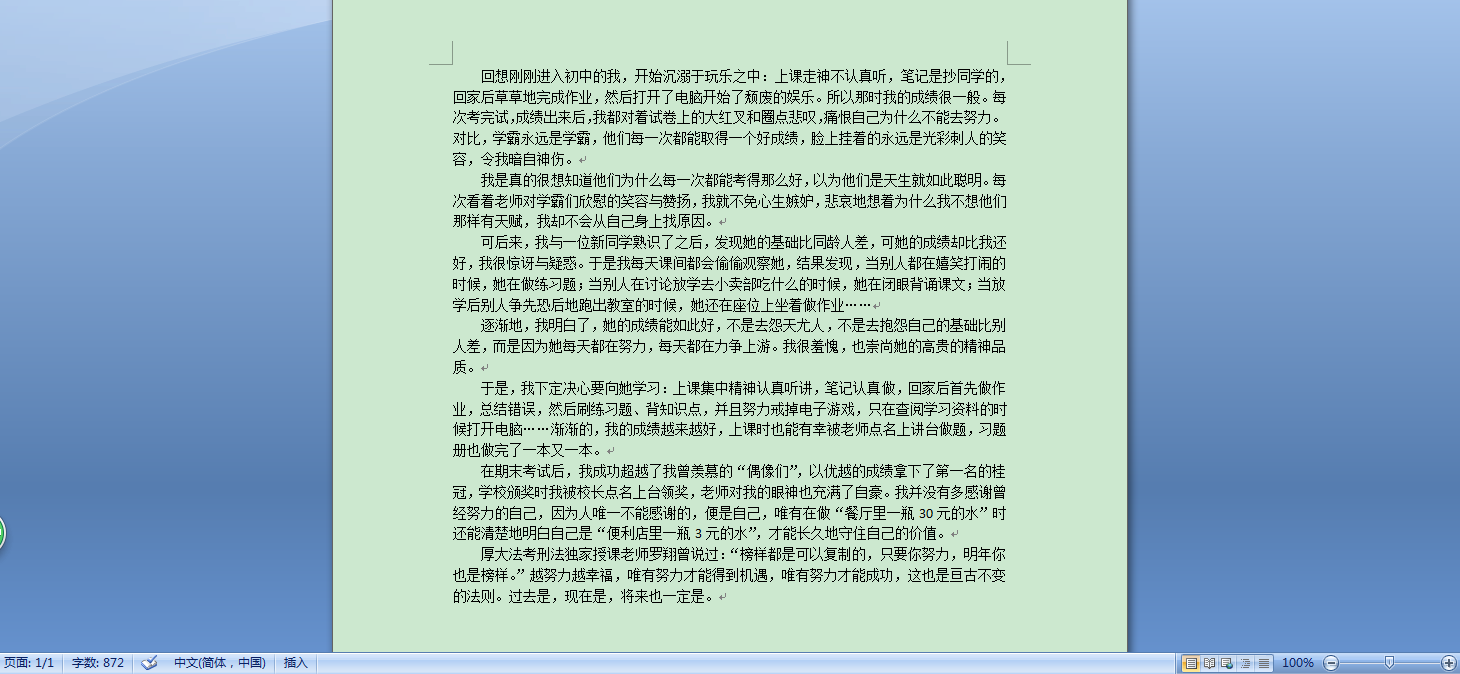 本来是准备在纸上写作文草稿的,但是突然想起自己有WINWORO,于是就写起了电子草稿(开头已经在作文本上写好了),事实证明真的很棒棒,我的思维一下就强了起来(虽然有些句子还是摘抄网络作文的就是了)