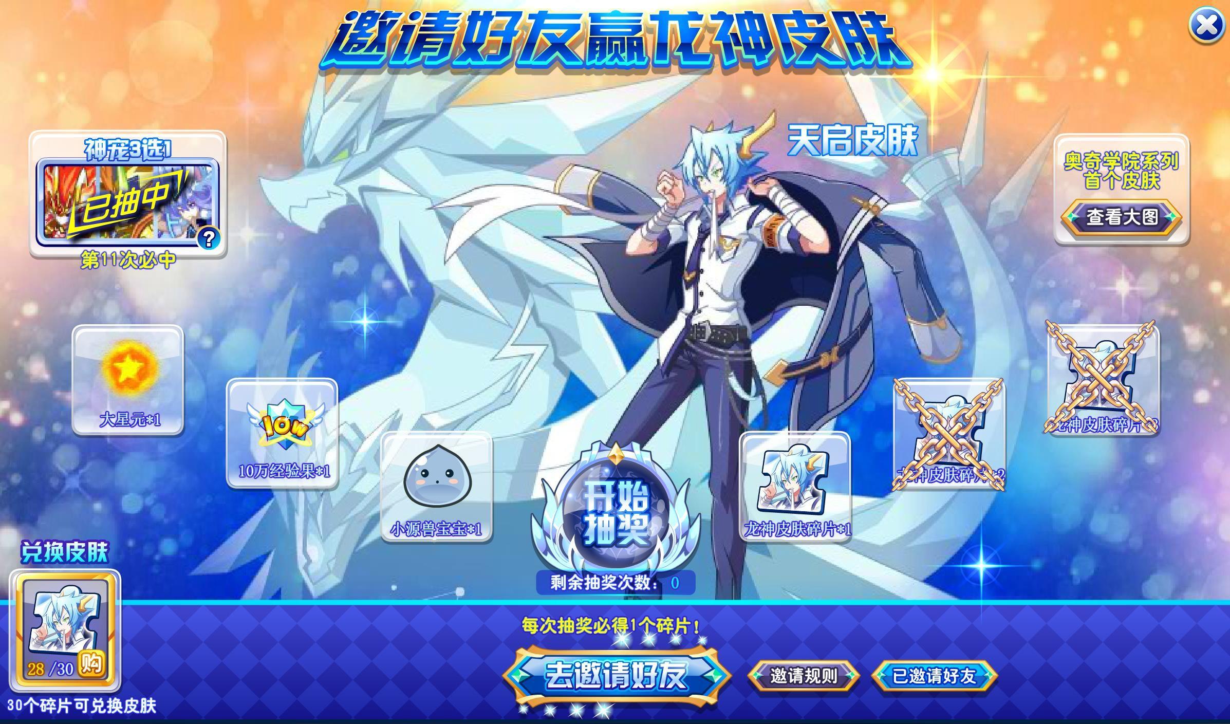 为什么在邀请好友送龙神皮肤活动中邀请了好友不给我抽奖次数???