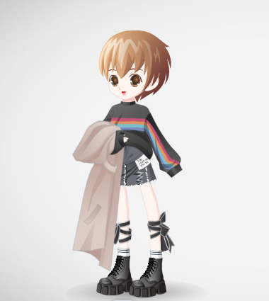 3.这三件:轮胎鞋+彩虹衣+牛仔裙