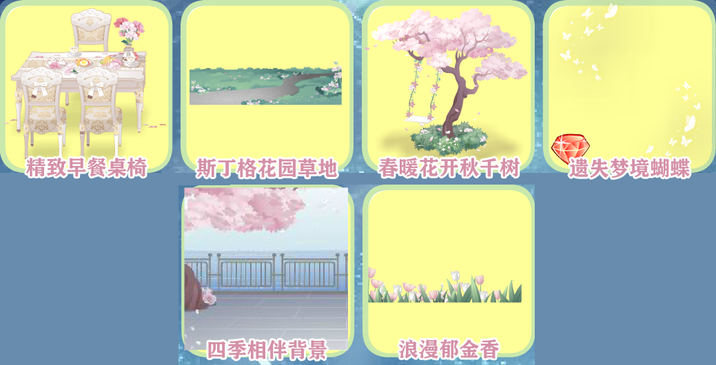 妮娜演员舞台帽,超萌小寿星发,莱娅美人泪痕状,玛格丽特领饰,玛格丽特名媛裙,妮娜演员双袖(左+右),海鸥戏剧舞台帘, 海鸥戏剧舞台景,筑梦欧泊相框,爱心早餐桌椅