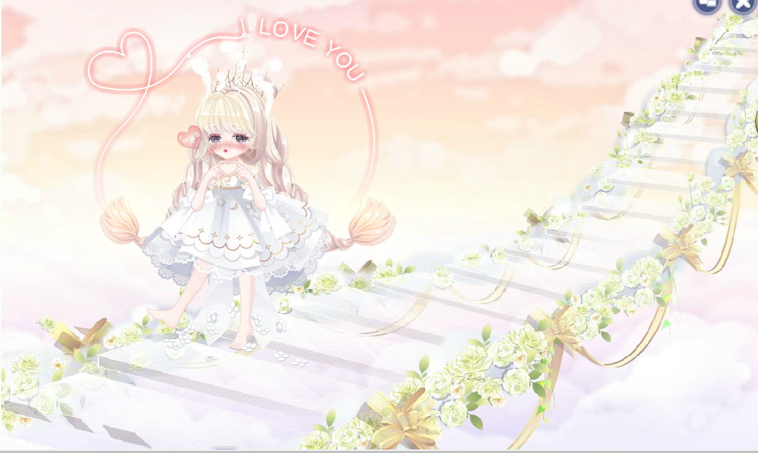 搭配部件:温柔妈咪妆,女神的吻,被选中孩子厚发,温柔校花比心手,恩冰脸红红蒸汽,浪漫巴黎圣女皇冠,爱.梦幻音灵赤脚,幼龙公主短裙,小甜甜我爱你,风之女神长梯,空之境背景,恋.满天情书