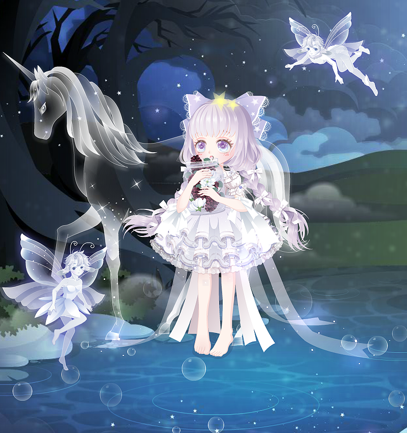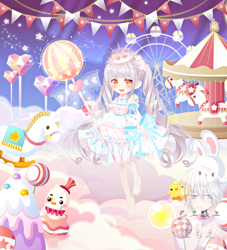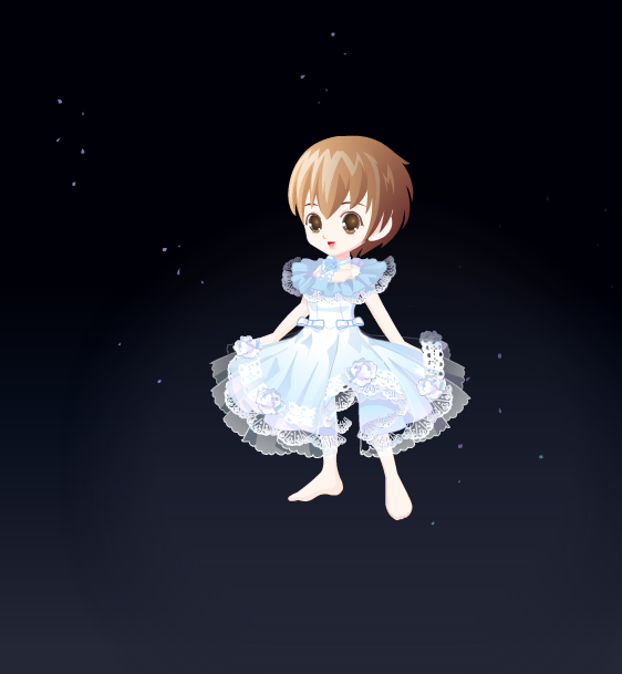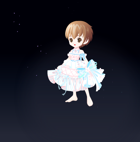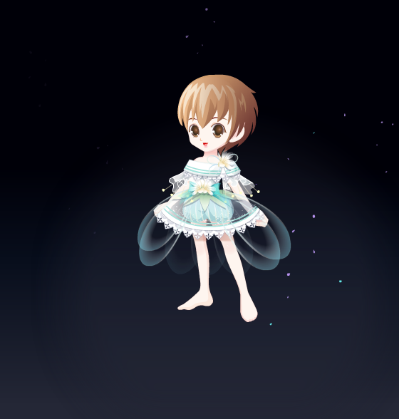 欢乐魔法礼服:平民裙子,我个人认为蛮配星星魔法的脚的(见图二),没啥问题的裙子,但是还是不是很好配衣服,可能是颜色问题?