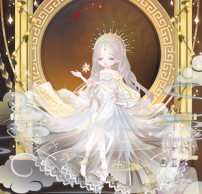 灵峰星圣灵蓬裙:也是和楼上的裙子一样,毕竟都是灵峰的队服嘛。只是这个裙子下面会有两个明显是拖地的飘带,所以安假腿的时候可能需要注意一下,不要穿帮。(我图一图二都有这个问题hhhc)