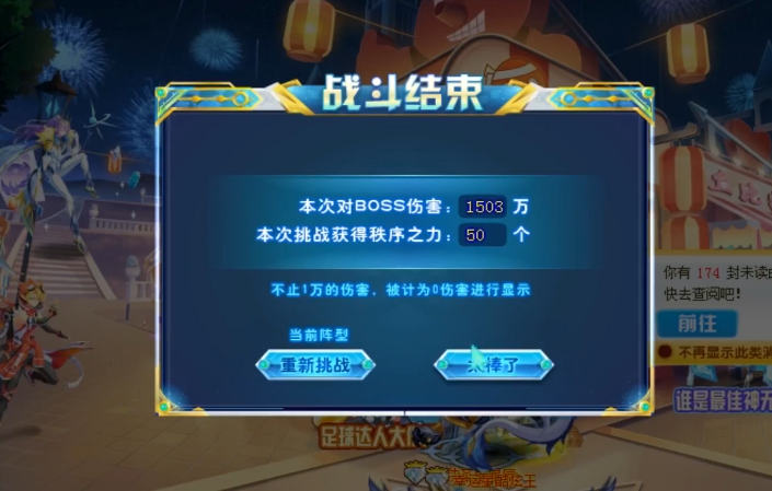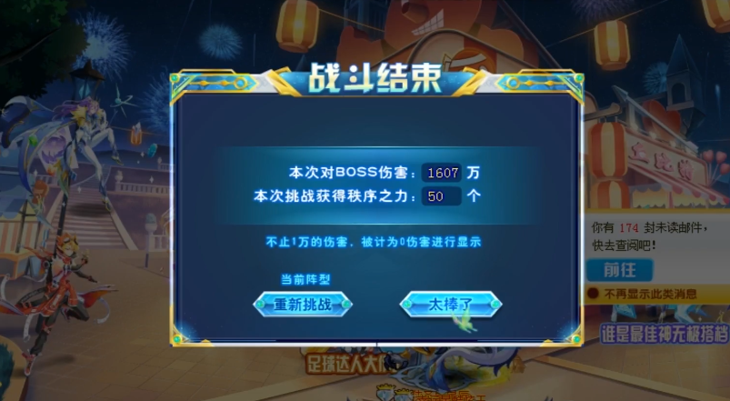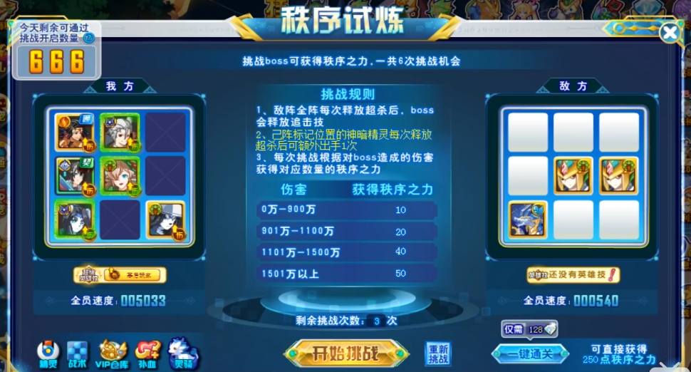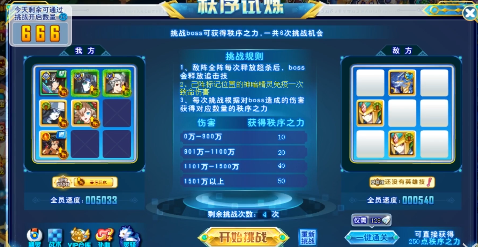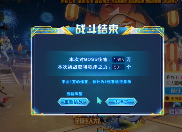 第一关:秩序试炼(boss关)贫民可以去看一下B站自由的贫民boss攻略,理论一次打到1500w就可以,本次攻略由于只有四次打到了1500w就发四次的叭,剩下两次随便打都可以