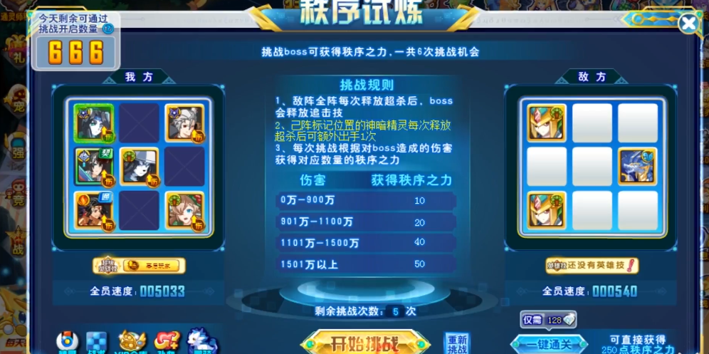 特殊要求:①五皇不触发秒杀;②火次暴击秩序