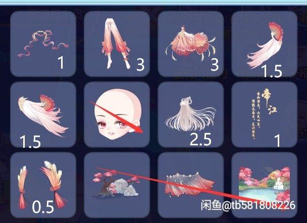 飘带1,腿子2,裙子2,两手3,头发自留