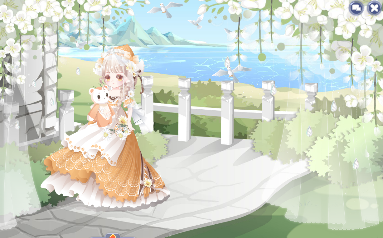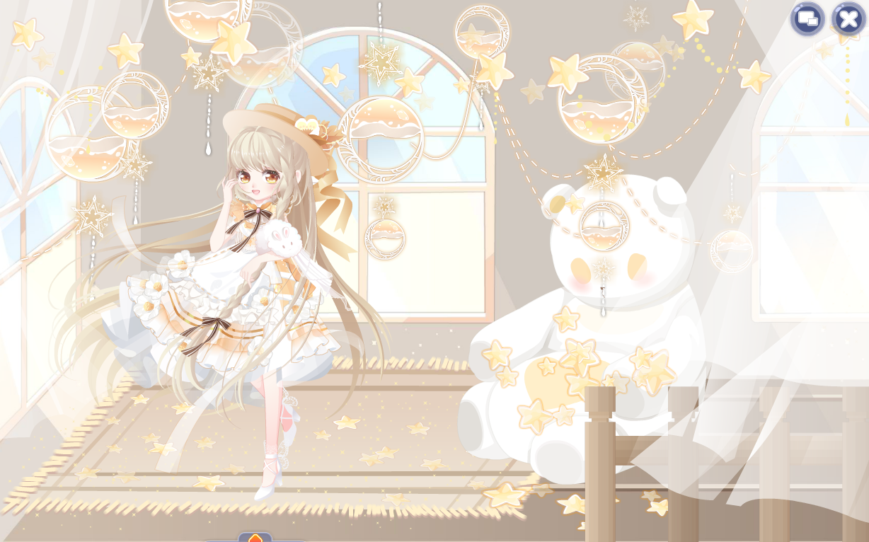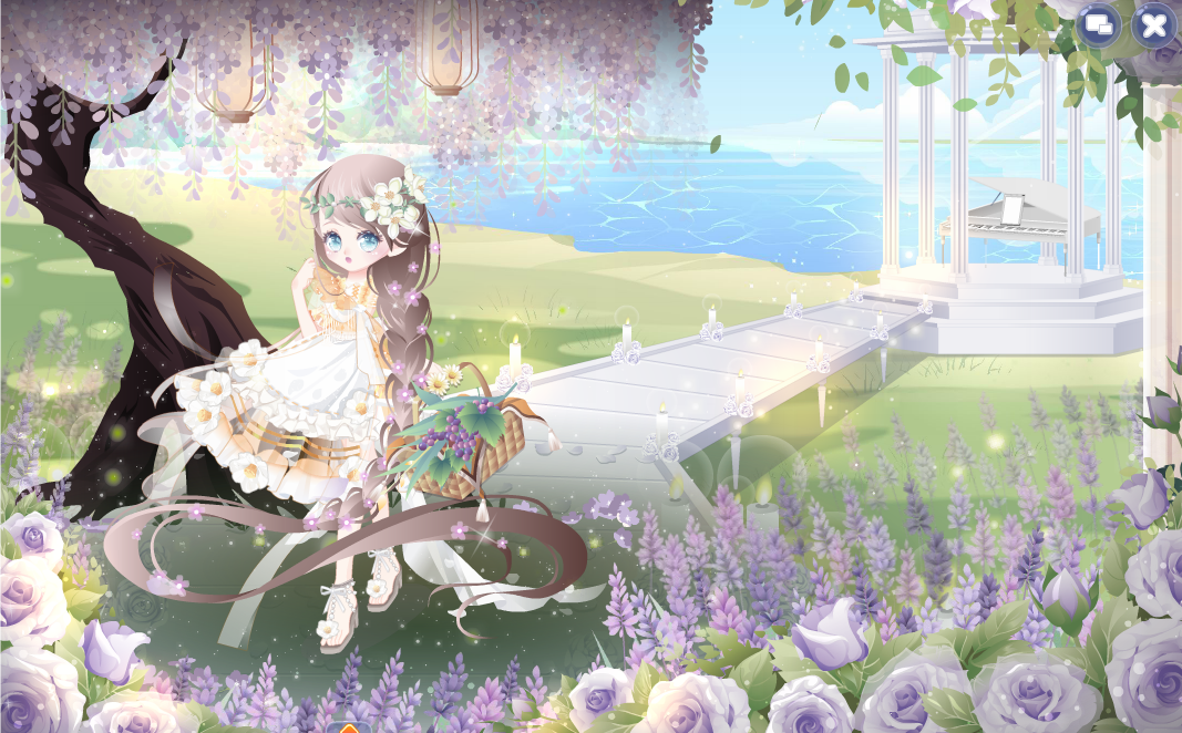 搭配部件:漫步云雾长发、花溪音漫大竖琴、玉宫雪纱梦境、玉宫萌动兔唇、x.y经典珍珠饰、萌萌花熊短裙、古城少女微笑妆、钻石海洋指挥手、玉宫清冷凉夜、雾香星蝴蝶、雾香星花群