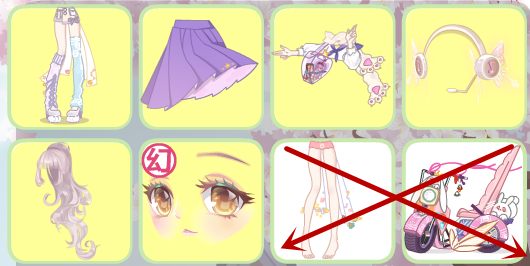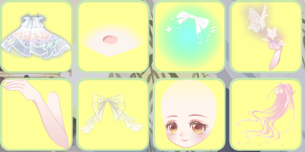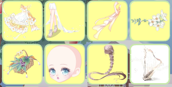 未来星偶像招呼、今·千金寻爱裙摆、古堡人偶捧花手、古堡人偶上衣、