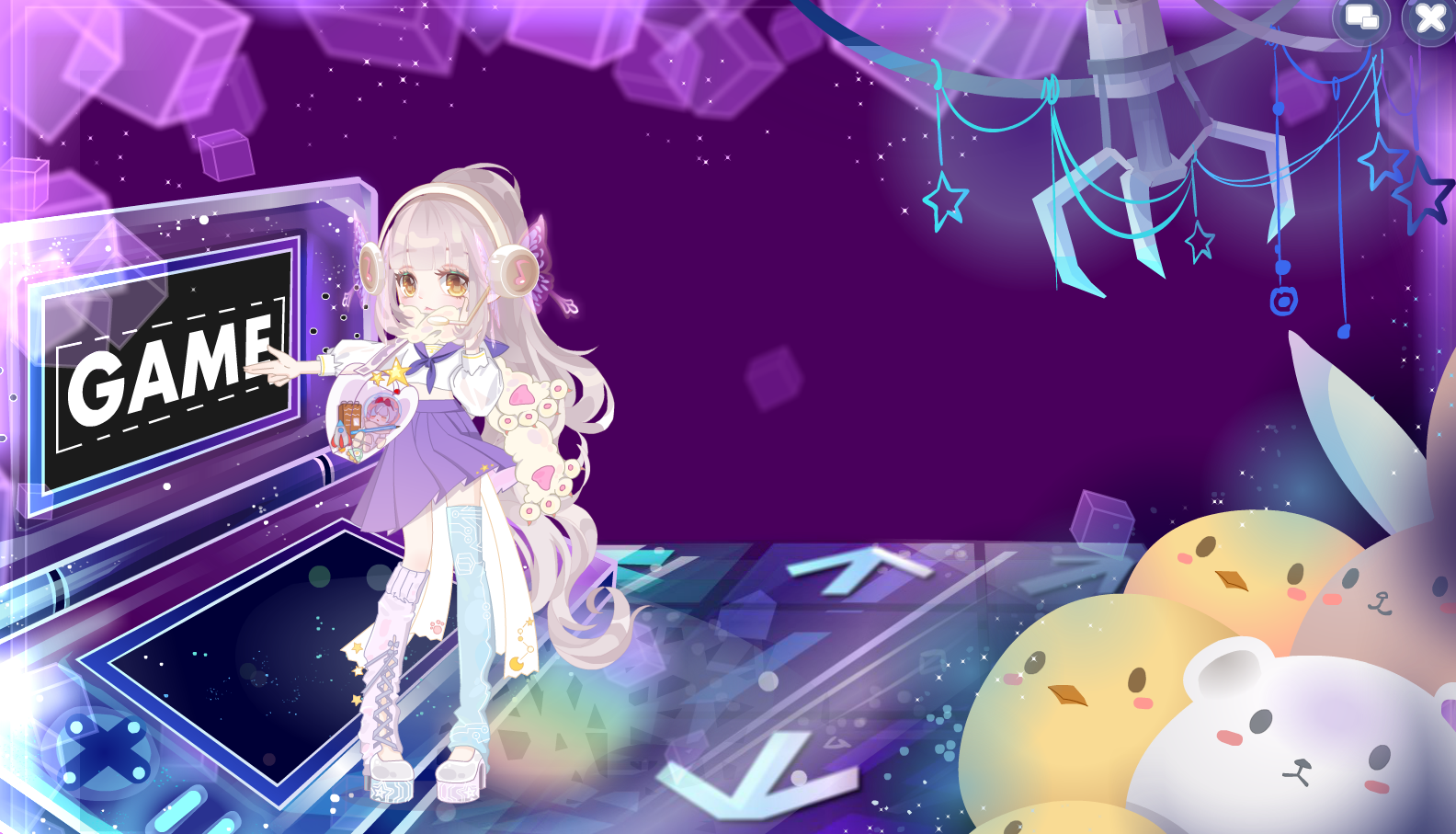搭配部件:暴走撞色松糕鞋、暴走jk星星裙、暴走jk上衣、流行歌手冰耳麦、精灵呢喃头发、珠宝大小姐表情、土酷深紫背景、星炫酷玩方块、星炫酷玩夹娃娃、星炫酷玩掌机、星炫酷玩跳舞机