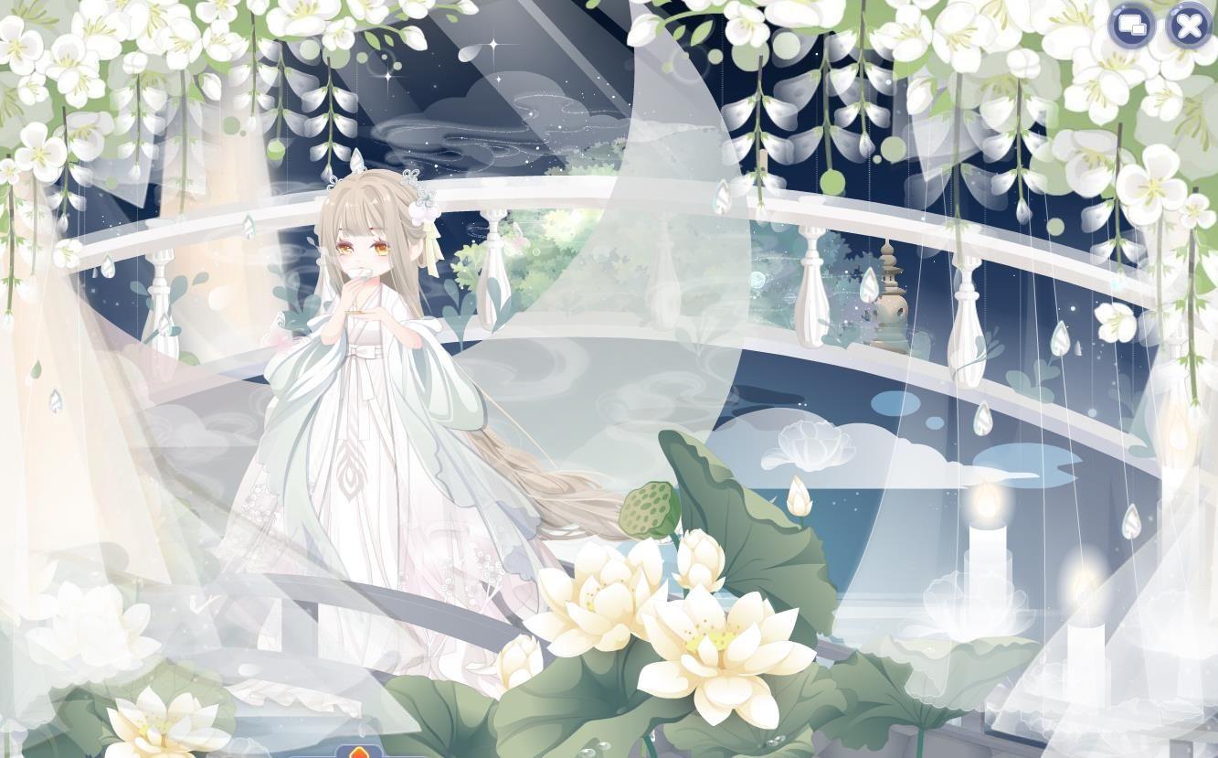 玉宫月湖光景,玉宫清花坠纱,快乐之花全屏景