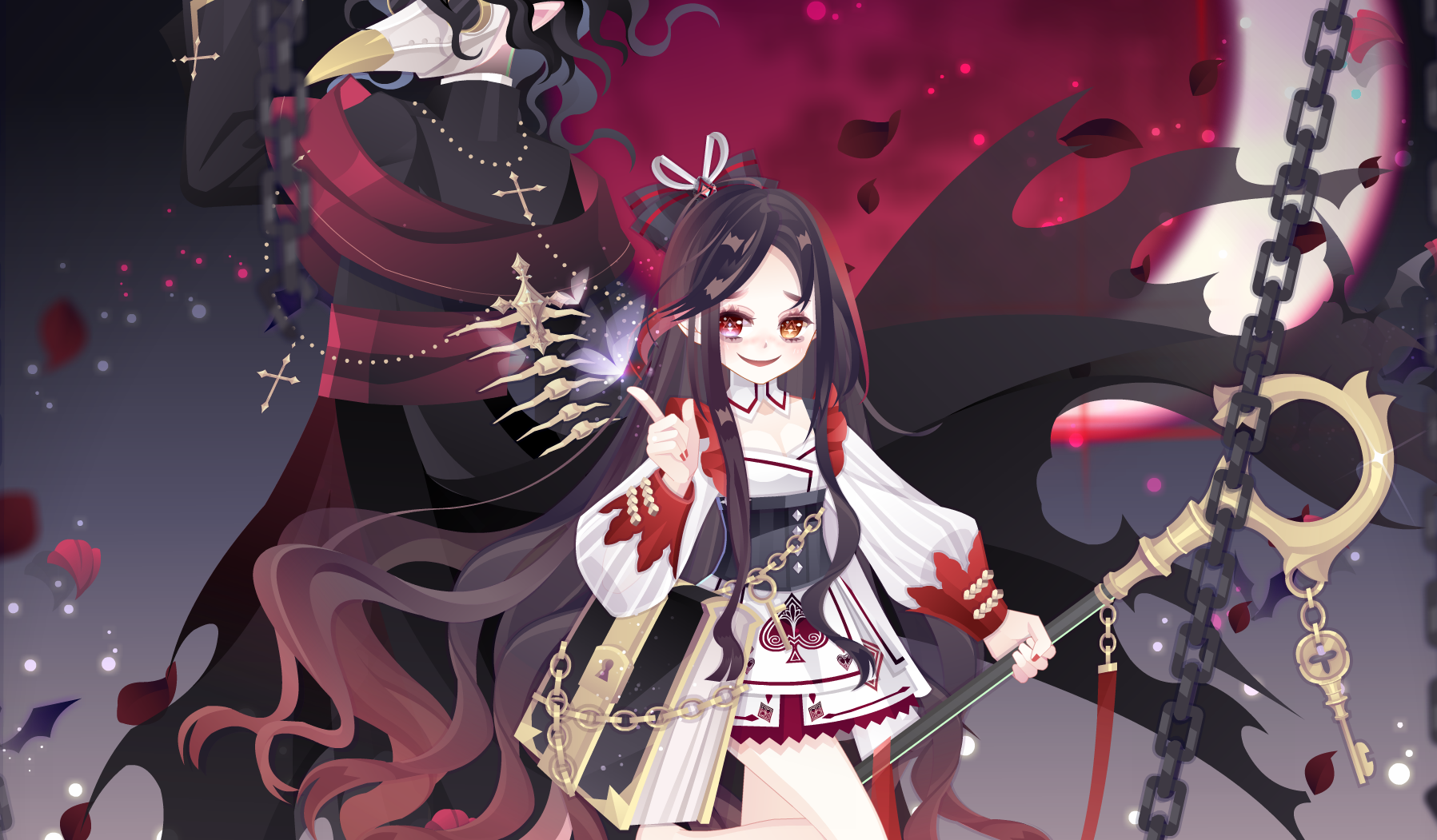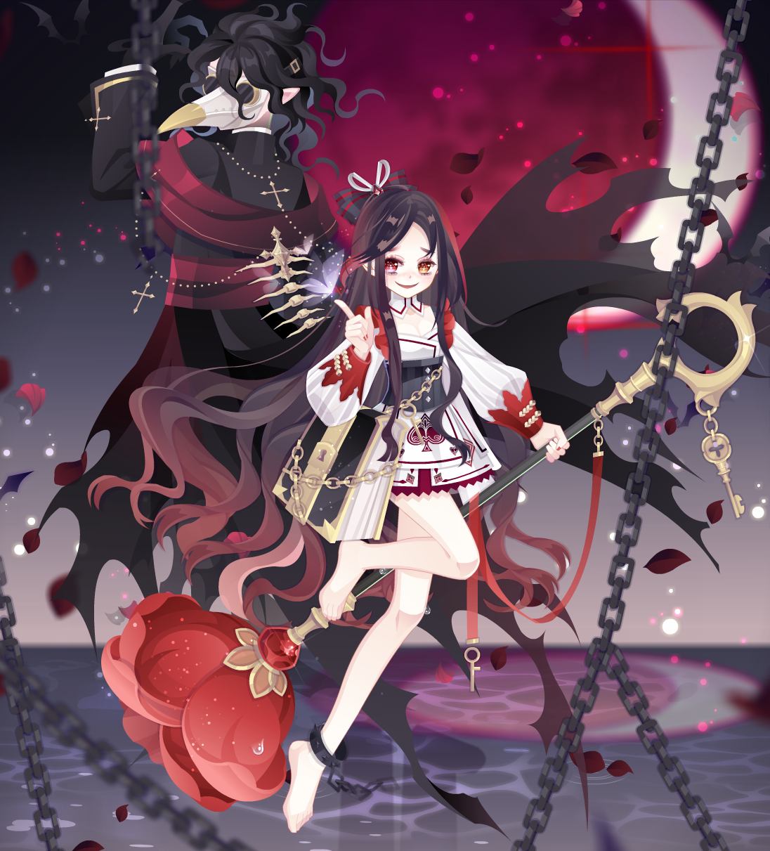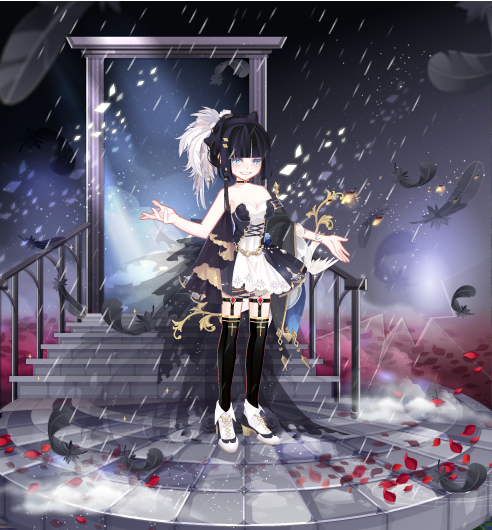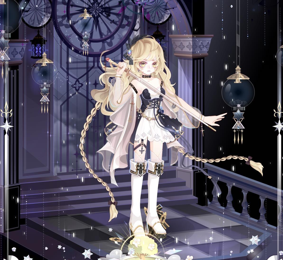 巴芙洛娃头饰、格里芬辫子金发、TV时间猎手金瞳、机车朋克颈饰、塞西女王长剑袖、塞西女王白袖谎言真心短裙、死神新娘腿饰、觉醒夏洛特靴子、永失所爱背饰、奥雅幻影分镜框
