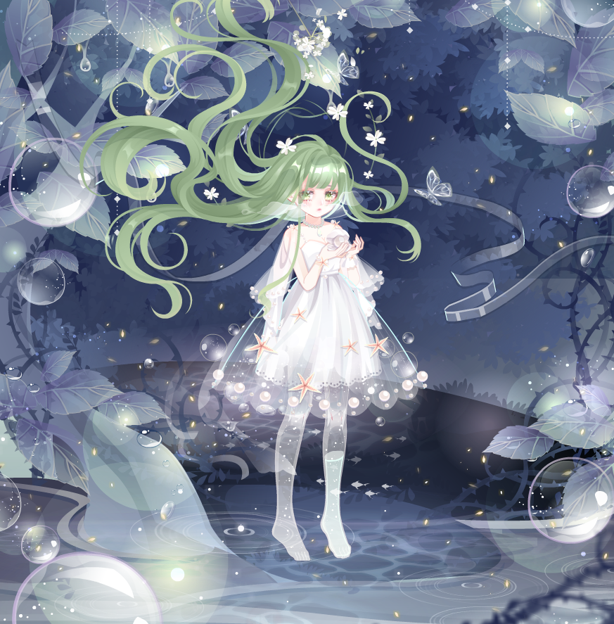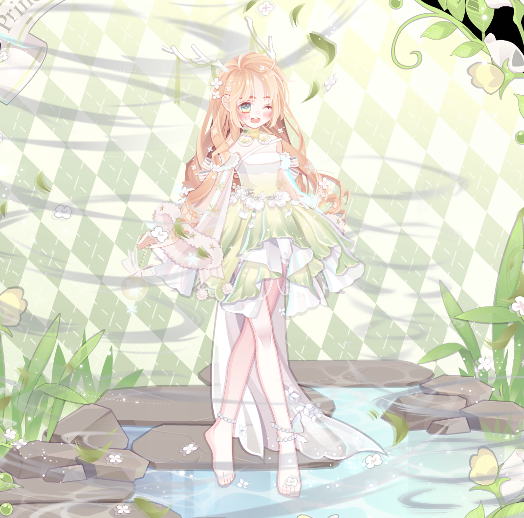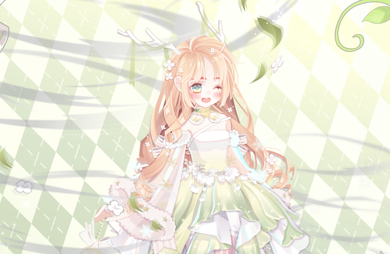 【搭配部件(手打或截图)】森之夏洛特长发、TV缇萦调皮、流/感/肆/虐颈饰、萤火微光短裙、花朝之神PO腿、诞灵流光袖子、诡异的龙卷风、清水溪流背景卡、芬兰芙蕾娅头饰