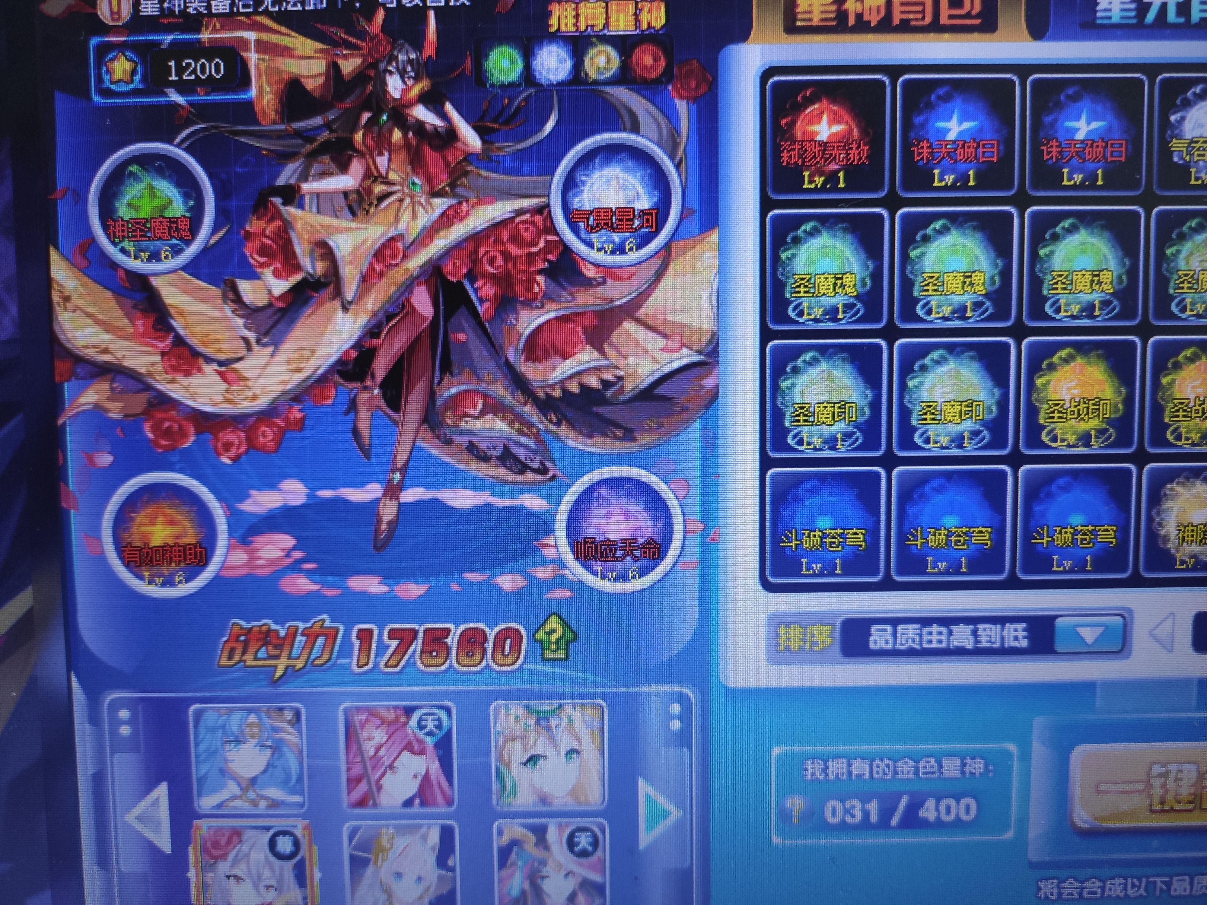 精灵最好都带3红1金才是最好配置,4红以后要换星神都不方便,现在boss挑战时不时就要换星神,命中和破击看对面选择,在带红气,红魔,红暴,