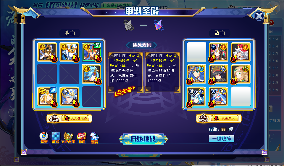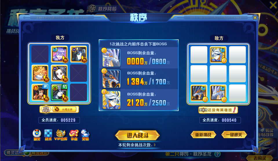 这是要求:龙炎开大的第二次攻击要打死以世,火次尽量打死路西法。这里5破应该可以,只要3个阵6破其他5破就可以