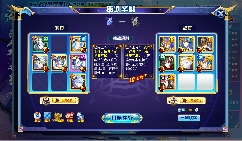 要求和上面一样,不过次元可以不用第二下打掉秩序不灭状态,无烬打谁都可以,超神龙可以被无序打死,然后就是诺雅多暴击,不然打不死以撒。