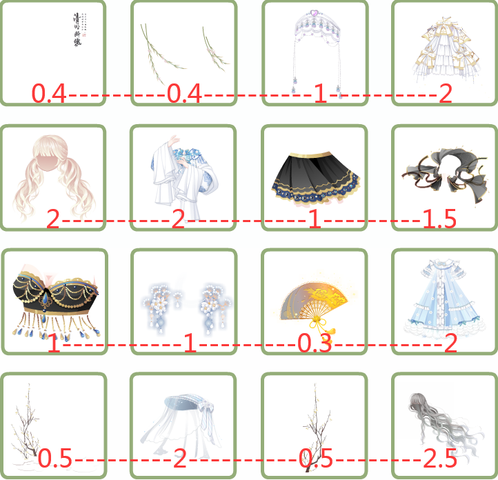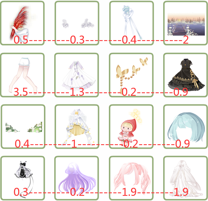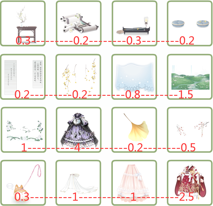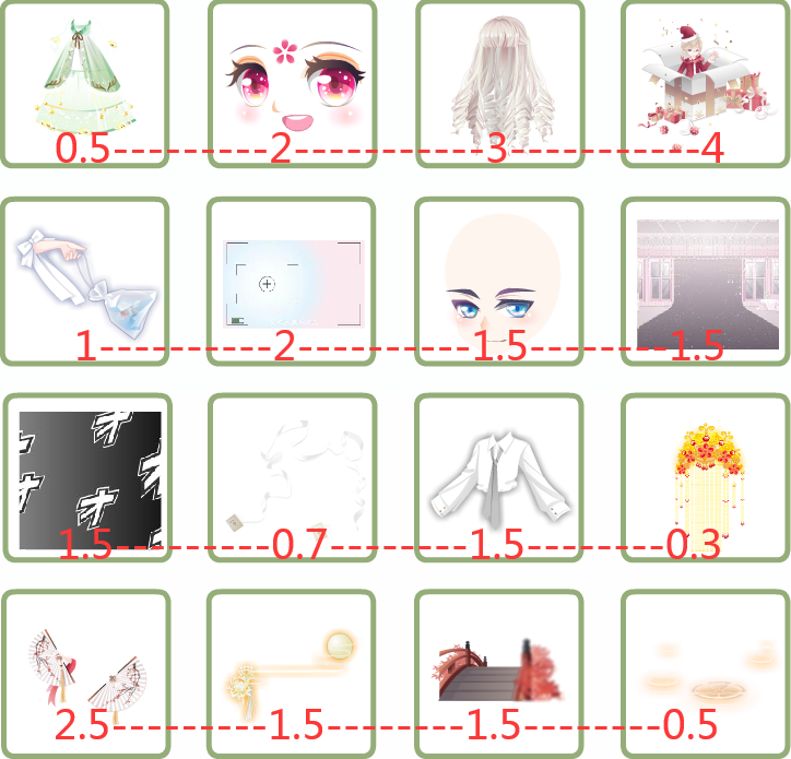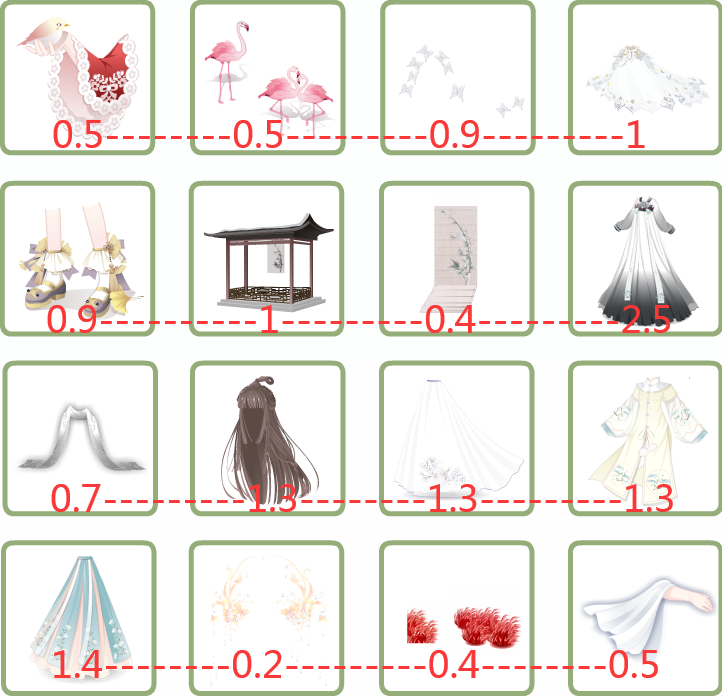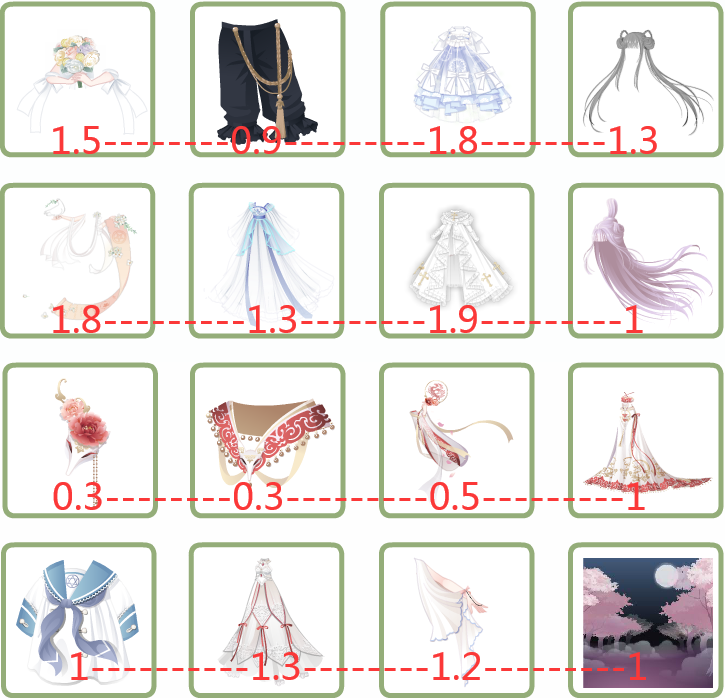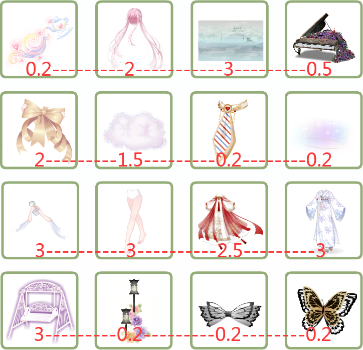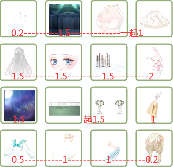 1-3改1.5, 2-1改1.5, 妲己打包2.5, 4-2改1.2, 4-4改0.9
