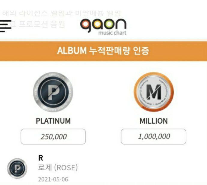 ROSÉ 专辑?-R- 获得Gaon 白金唱片认证