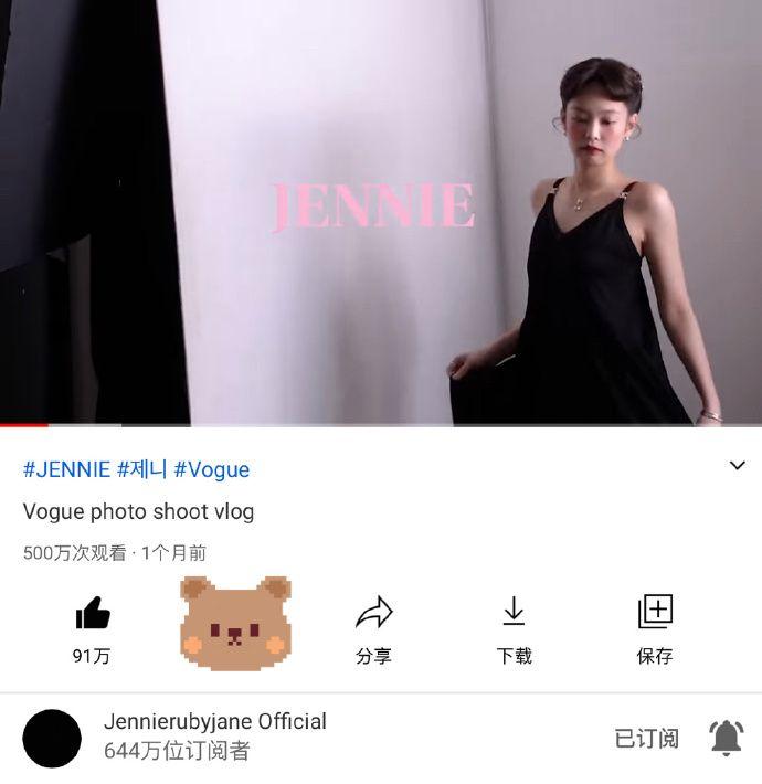 智妮Vogue Photo Shoot Vlog播放量达到500万