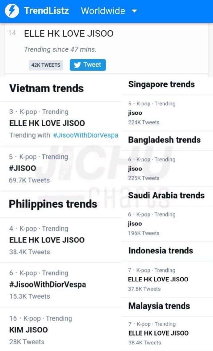 ELLE HK LOVE JISOO 登上世趋第14和七个国加/地区趋势