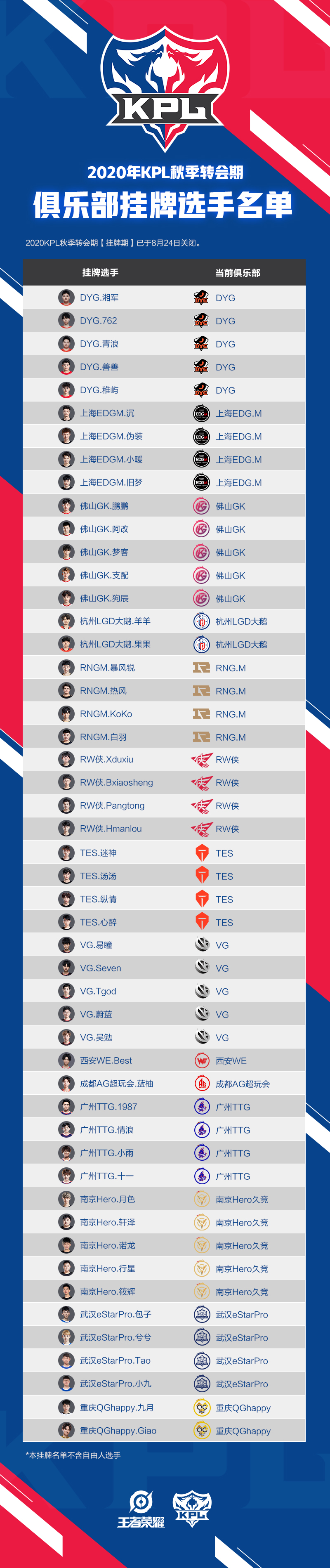 (26)秋季赛大名单汇总
