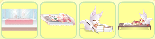 大兔子蕾丝赤足、大兔子手捧绣球、囚塔公主长发、涅槃之羽短裙、蜕变星长脱纱、上古祭歌吟诵妆、大兔子初恋框、白色之恋屋内