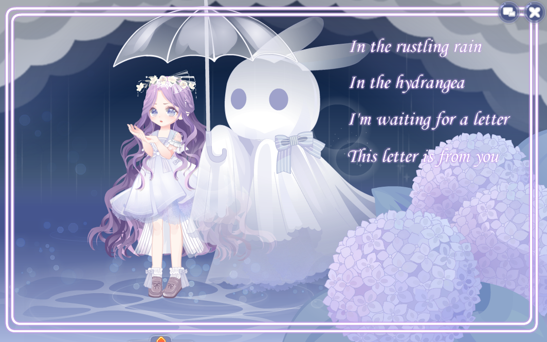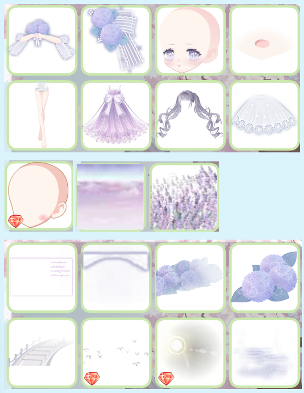 大兔子手捧绣球,大兔子绣球头饰,大兔子紫眸,噩梦终端惊讶嘴,蜕变星天使赤脚,粉紫公主裙裙,童话镇小公主辫发,恋·紫罗兰罩裙,24号饰品,薰衣花嫁背景,花嫁薰衣草,大兔子初恋框,大兔子云朵,大兔子微雨绣球花,大兔子雨后绣球,大兔子守护桥,寅时破晓飞鸟,寅时破晓阳光,空净香雾