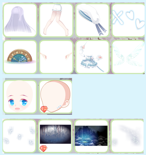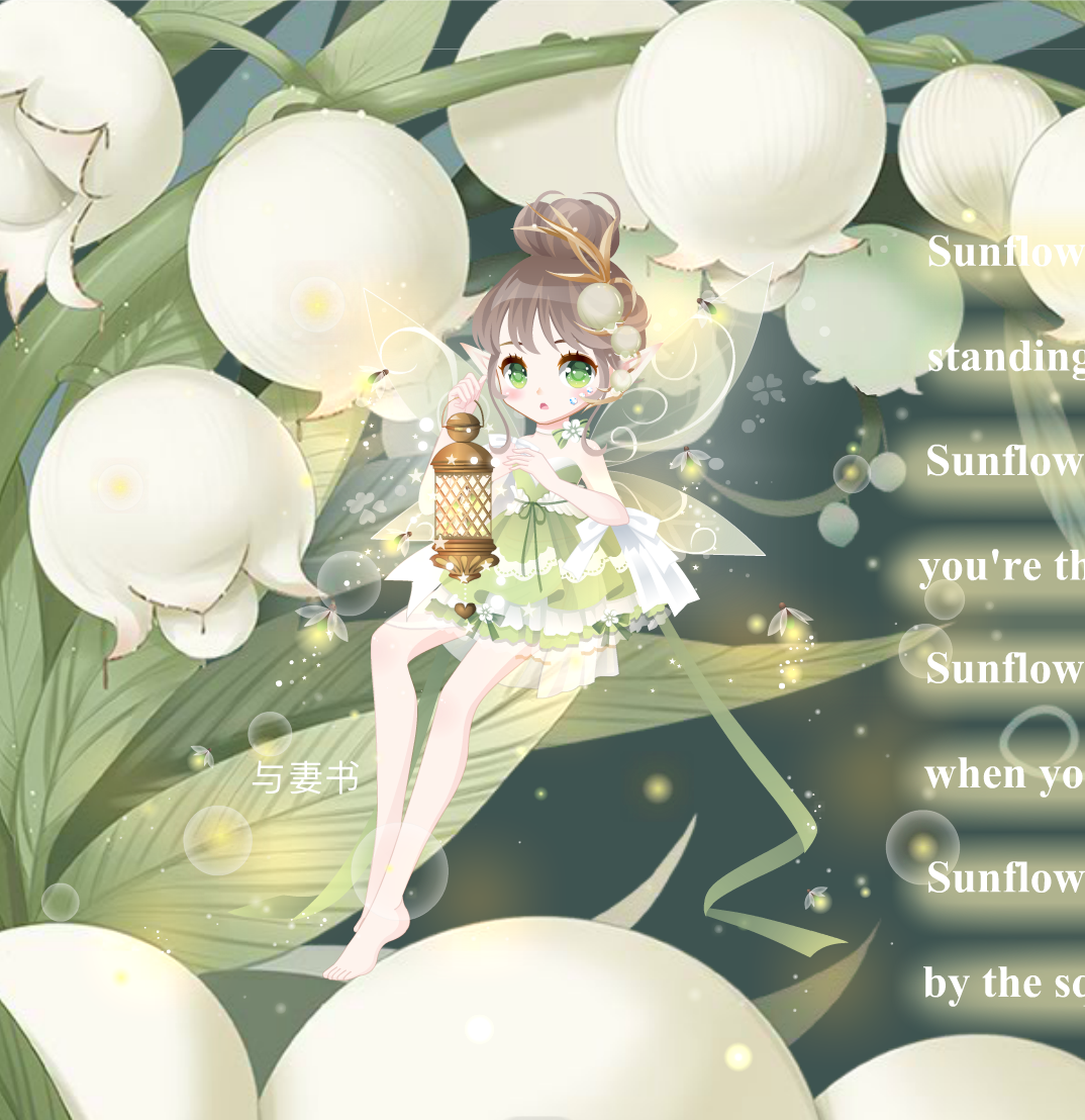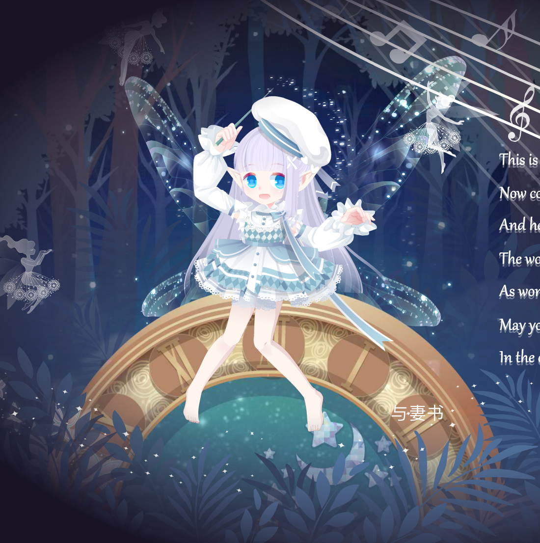 搭配部件:大兔子淡紫长发,守·碎晶战斗腿,回忆小水手帽,缘之录发夹,瞬·时光沙漏时钟,纪元幻境精灵耳,夜精灵指挥家,精灵小蜻蜓之翼,艾雪芭比精灵妆,5号饰品,初心蒲公英精灵,童话森林灌木丛,晶钻守护神秘林,雪之歌框架