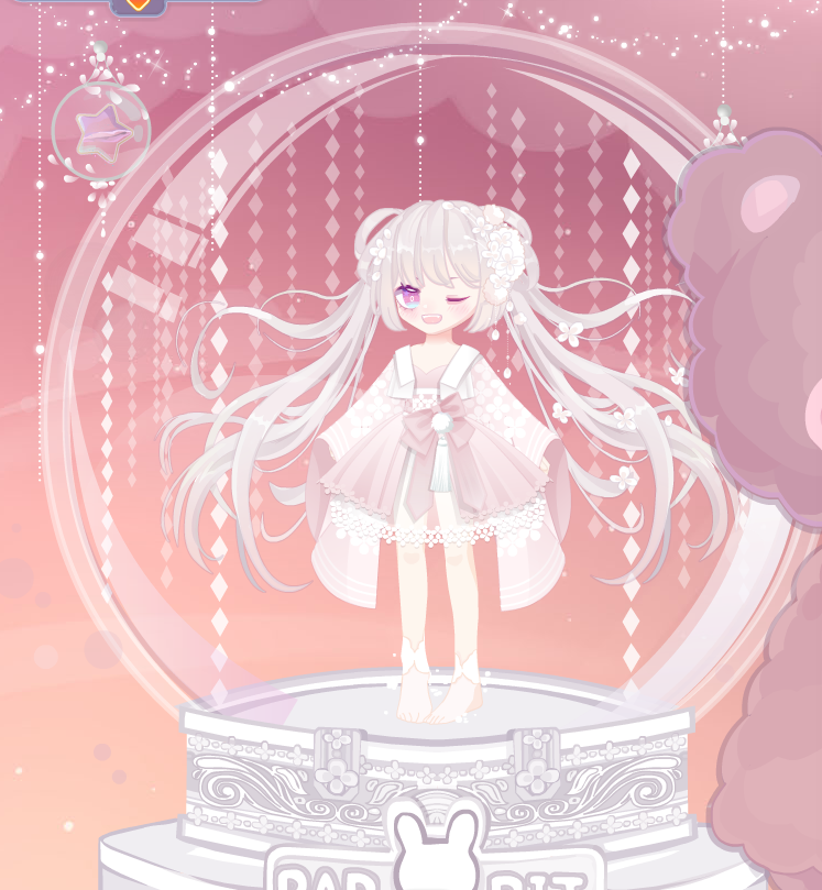 ·又是被背饰光效亮到眼睛的一天。不过有一说一花音秘境这个装饰在该风格中可以充当代表,真的太梦幻了质感upup,谁能想到当初只卖几块呢。真的没表情了,所以可以高冷一点。裙子的搭配效果不错。