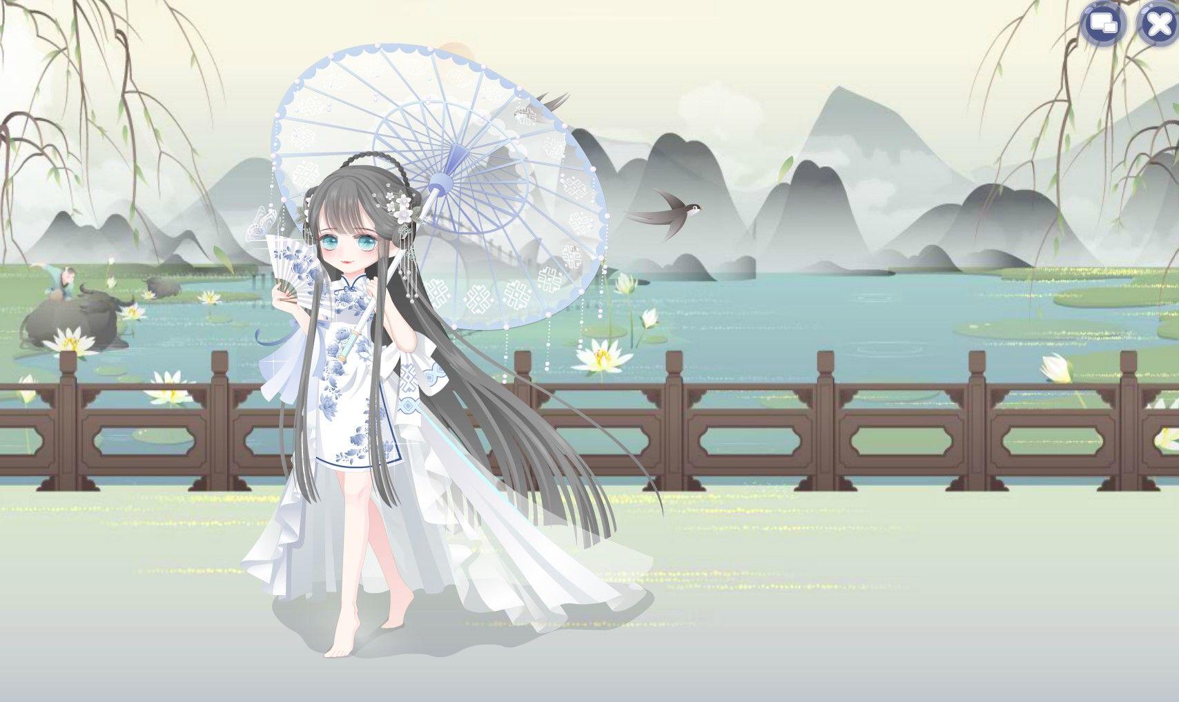 伞面上是中国风的图案,远近大小也很细致√和伞骨连接的吊坠会左右飘动,前后关系的处理让其更加自然