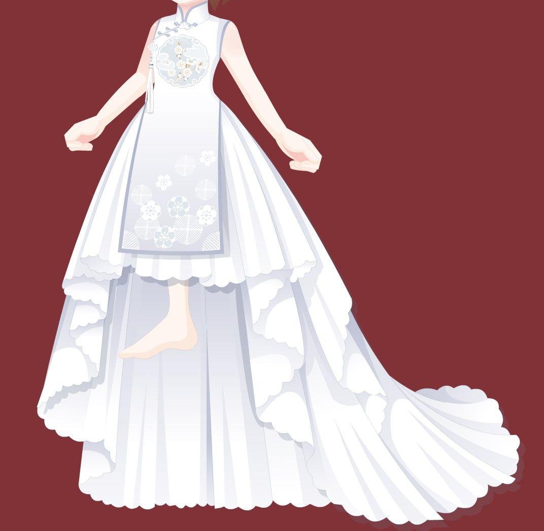 裙摆不是传统旗袍的样式,前短后长带花边,衬布印花摆拖地,有古风的韵味又不会显得老气,自带一点少女的活泼(我乱讲的)